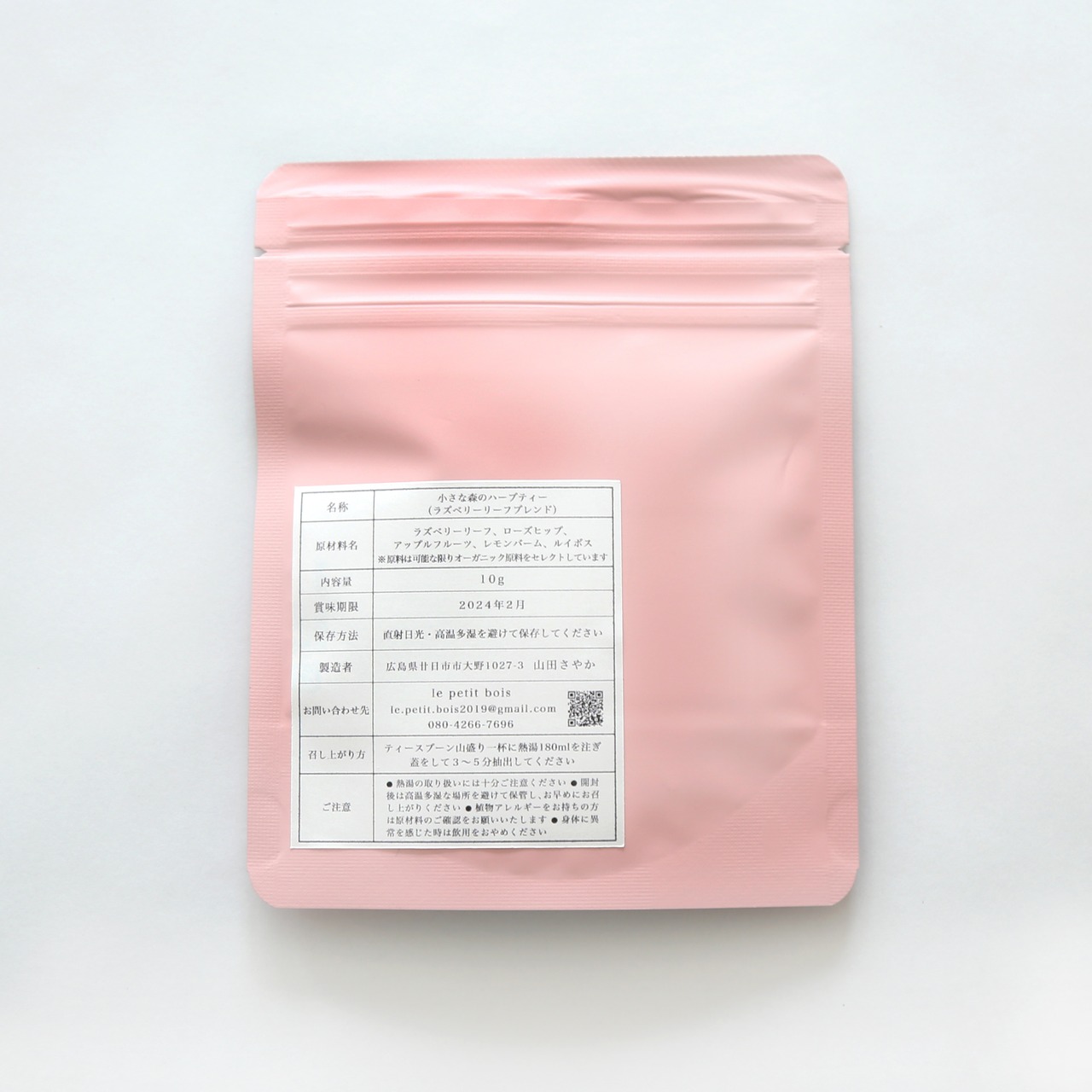 ラズベリーリーフ、ローズヒップ、アップルフルーツ、レモンバーム、ルイボス